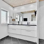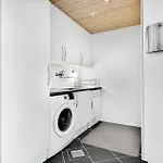 La Awesome Home In Skarup Fyn With 4 Bedrooms dispone de un cuarto de baño con ducha y lavadora. Hay secadora para la comodidad de los huéspedes.